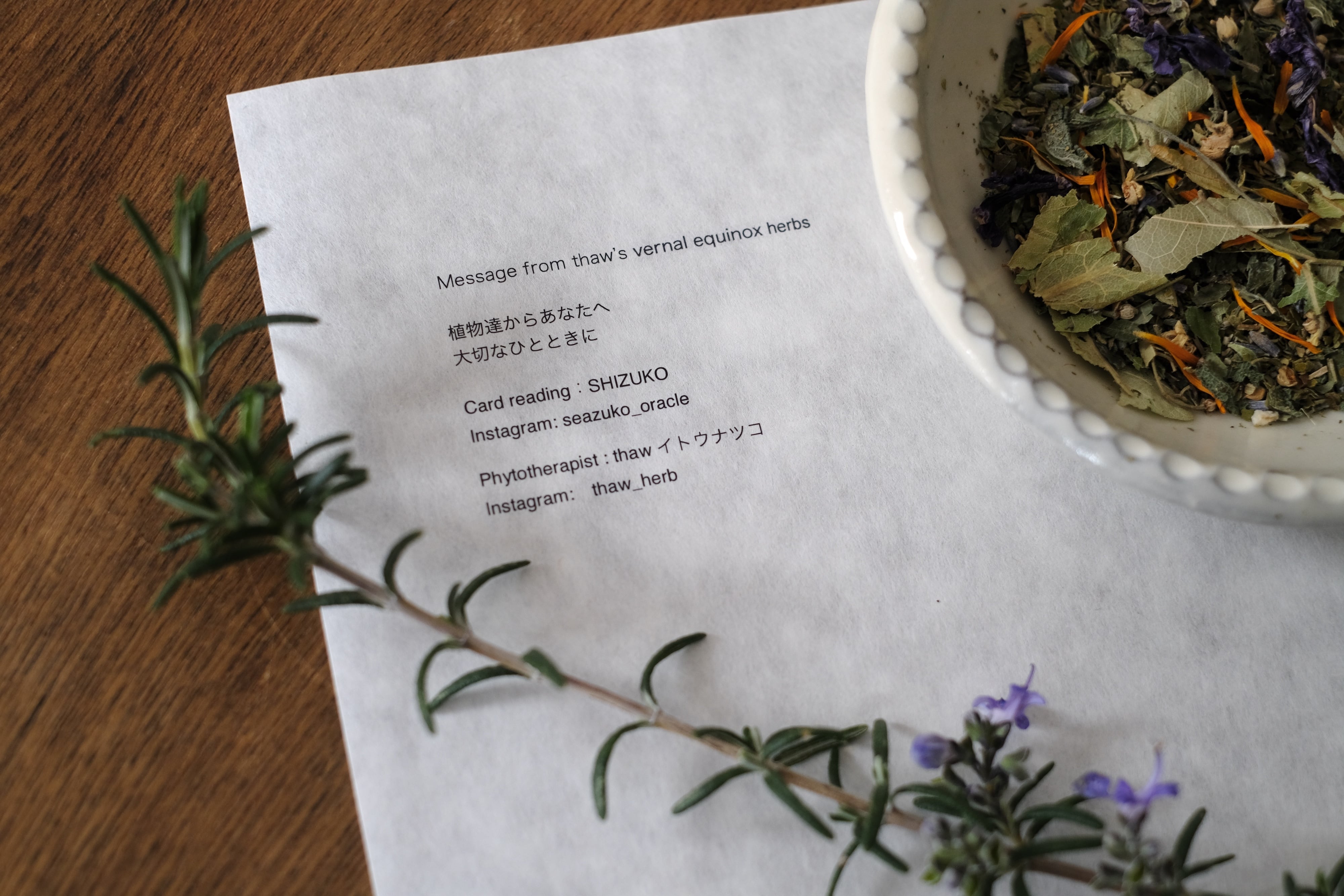 春分のお茶 (リーディングハーブティー13g+メッセージ+ローズマリーバーム)